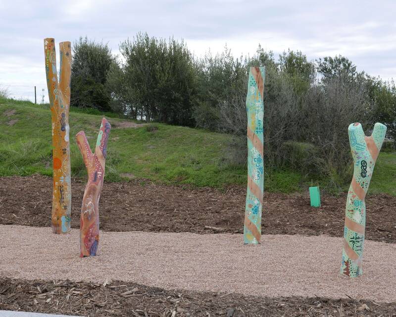 Other features are the painted cultural poles, which were created by local school children with guidance from a Kaurna artist.
