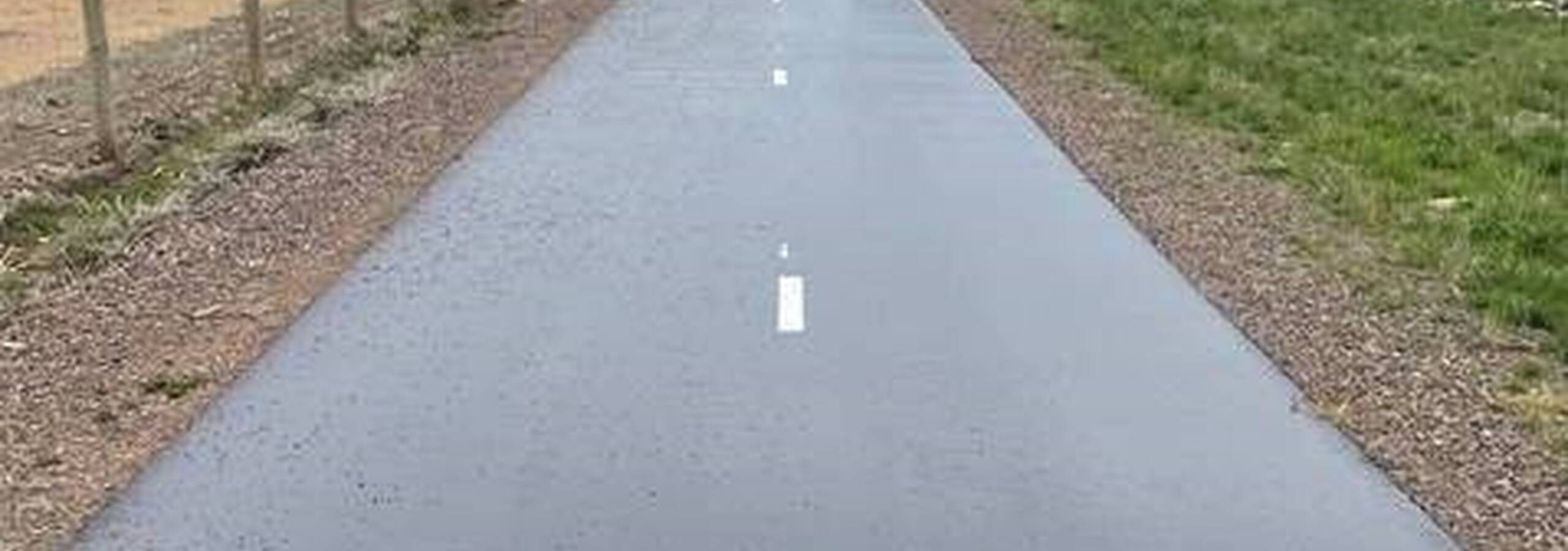 Sealing repair work to the cracks is visible on the pathway’s asphalt surface. The imperfections pose no safety issues to walkers and cyclists using the Shared Use Path.
