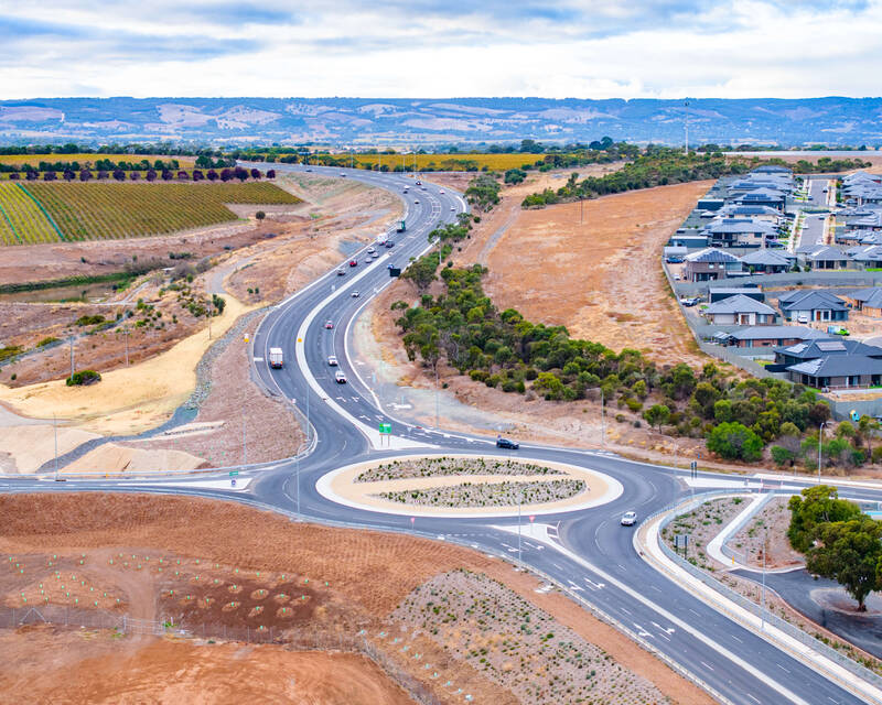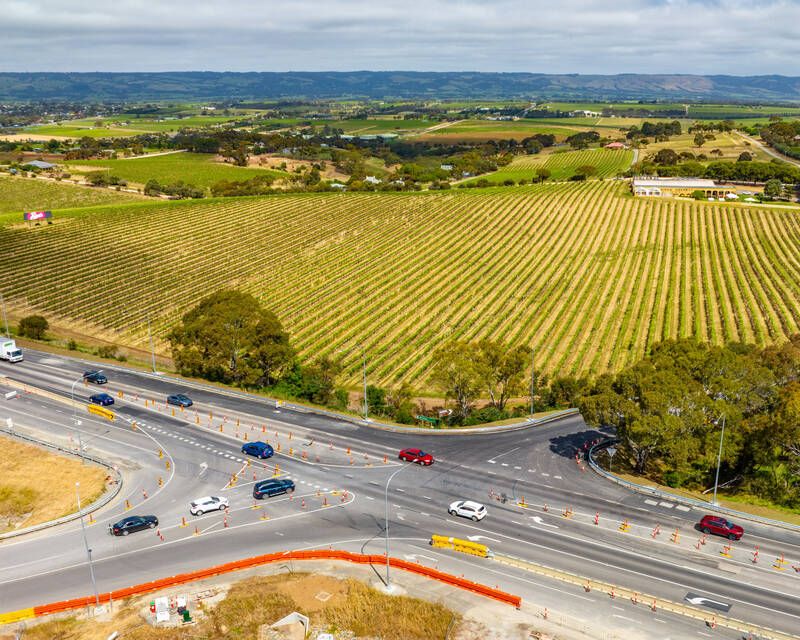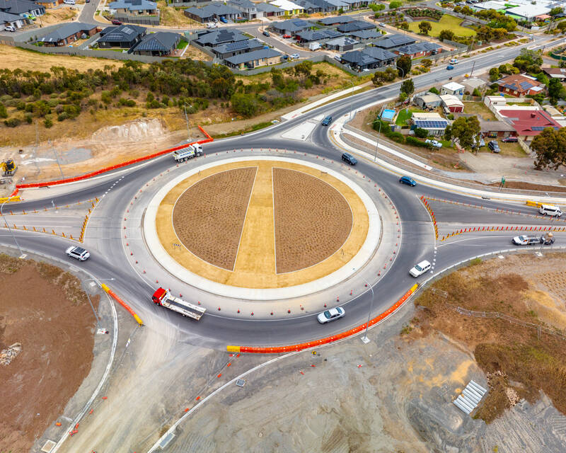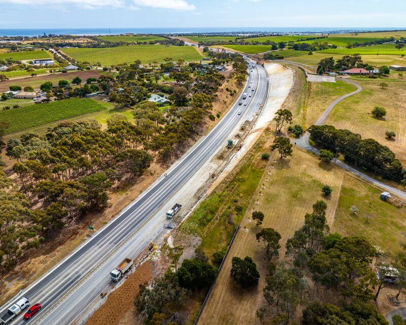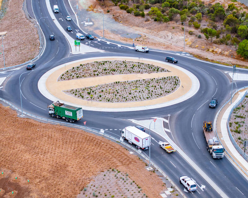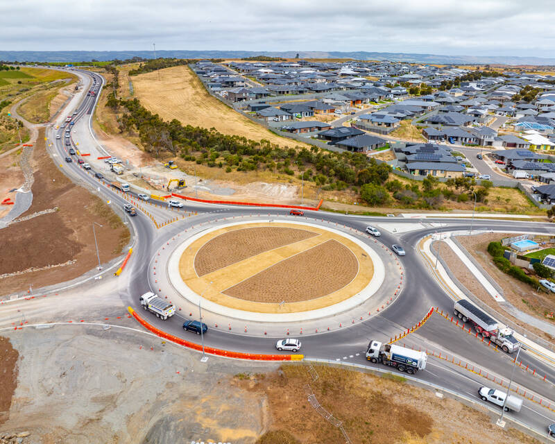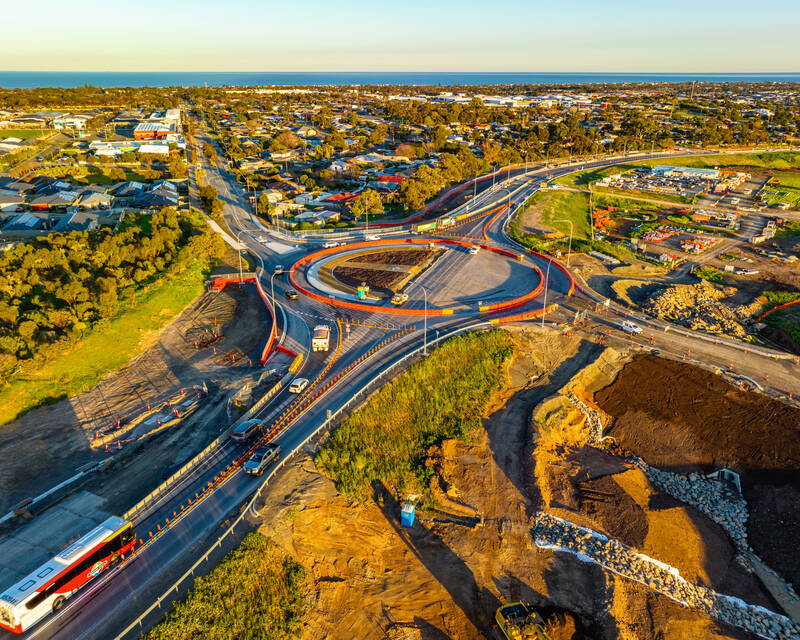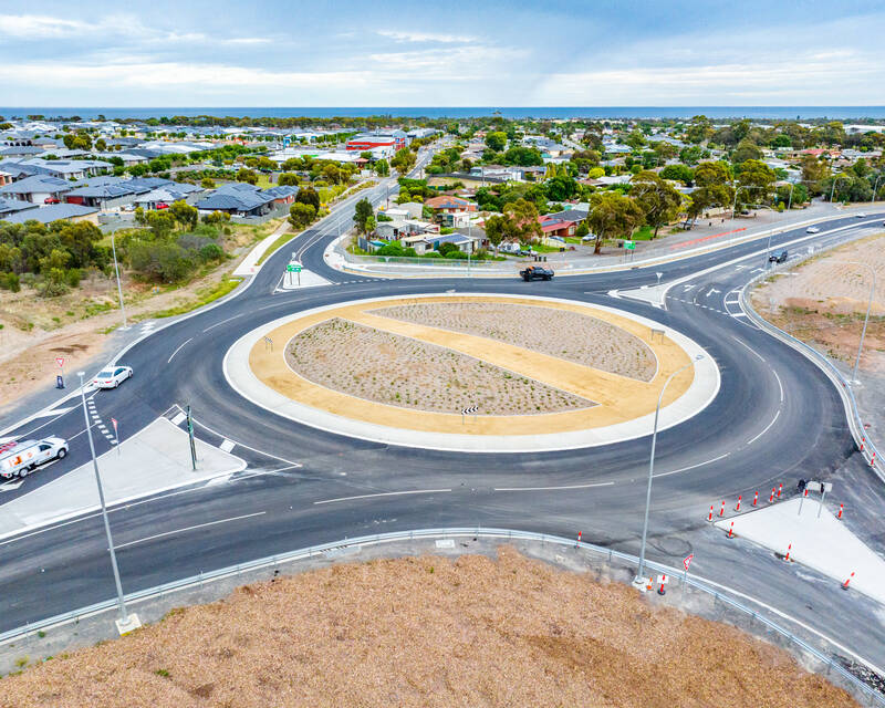 Project progress images Victor Harbor Road flyover April 2024 Victor Harbor Road - four lanes open - December 2023 Flyover of Victor Harbor Road November 2023 Robinson Road Roundabout