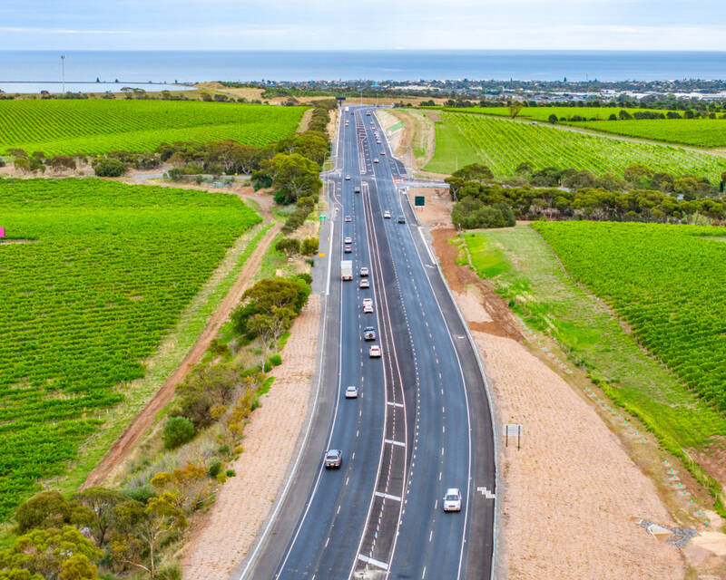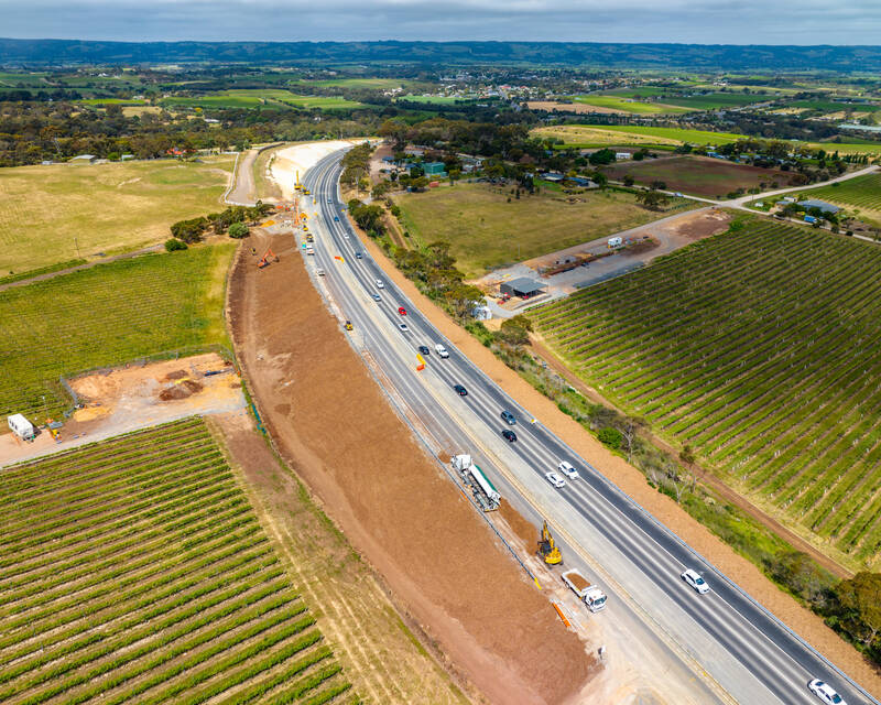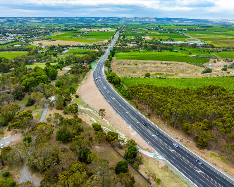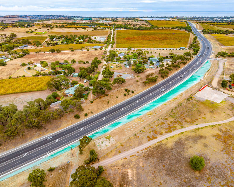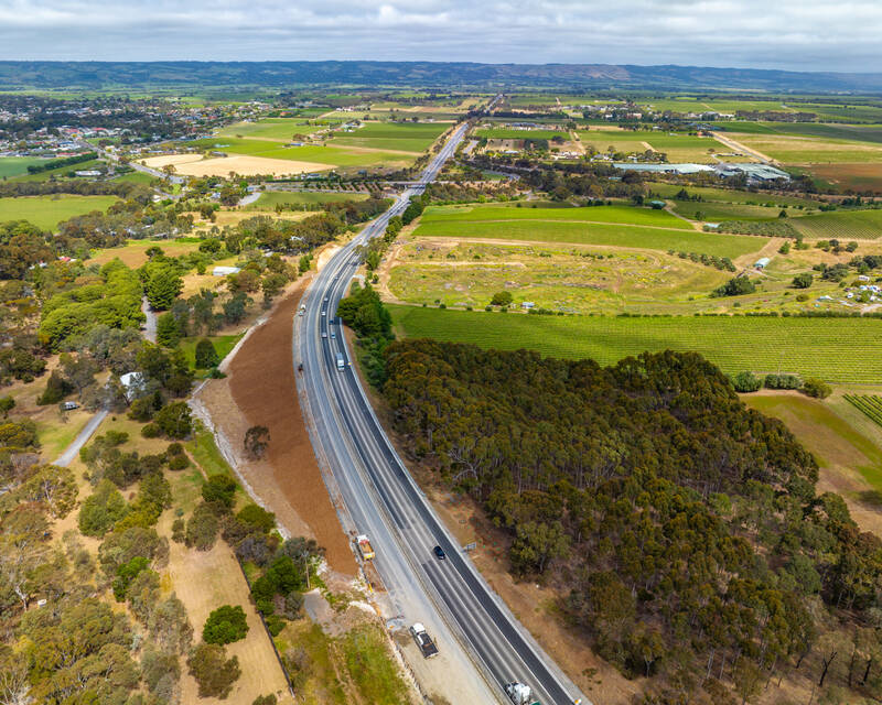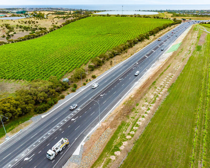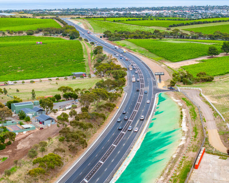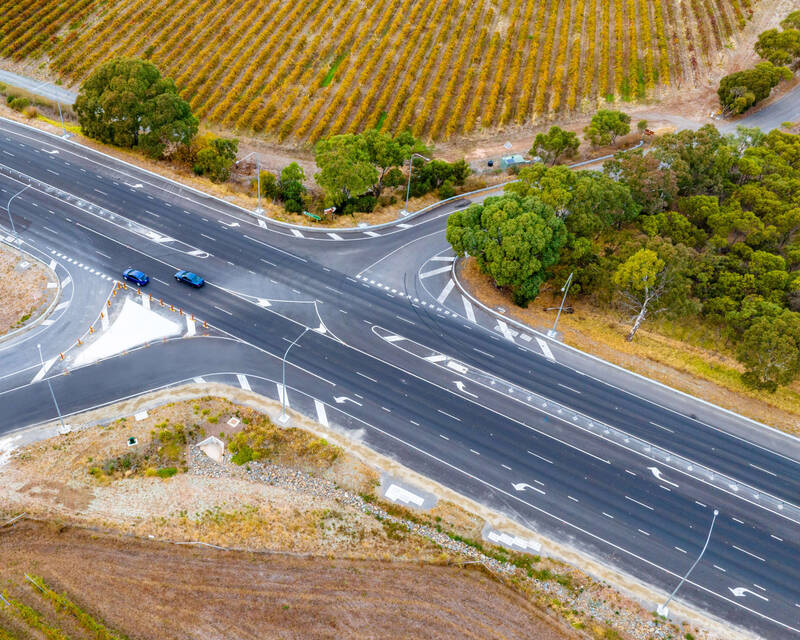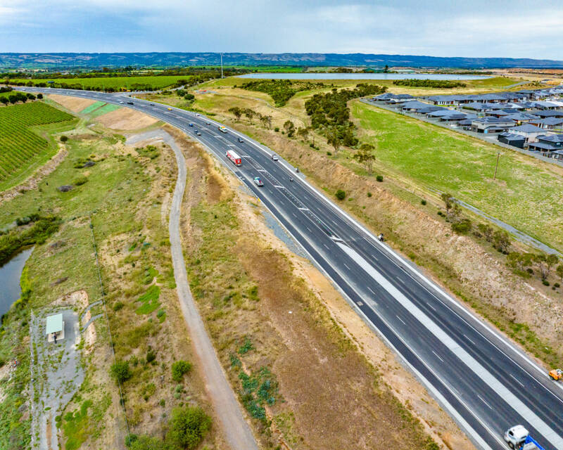 Project progress images Victor Harbor Road flyover April 2024 Victor Harbor Road - four lanes open - December 2023 Flyover of Victor Harbor Road November 2023 Robinson Road Roundabout